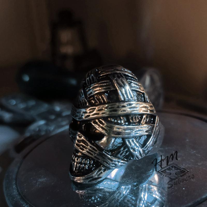 EGYPTIAN MUMMY SKULL STAINLESS STEEL RING