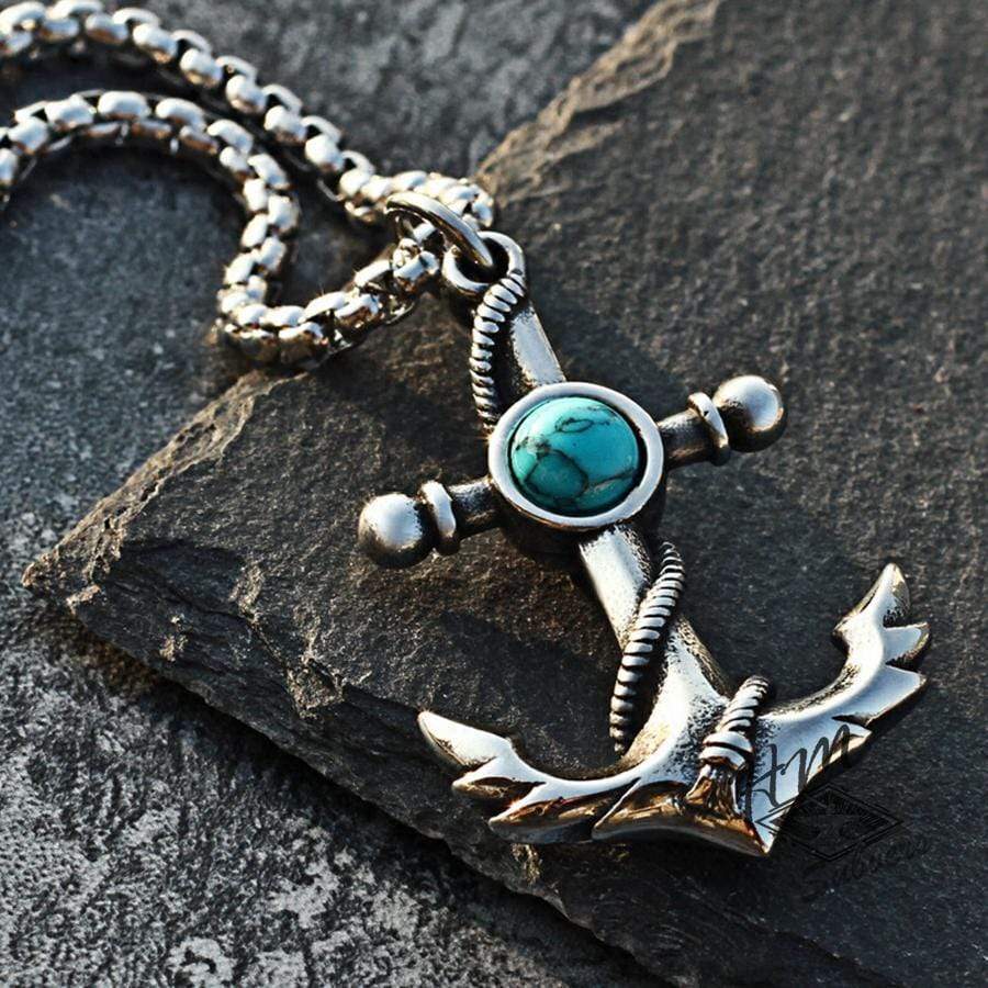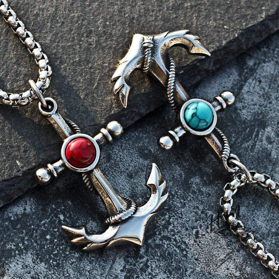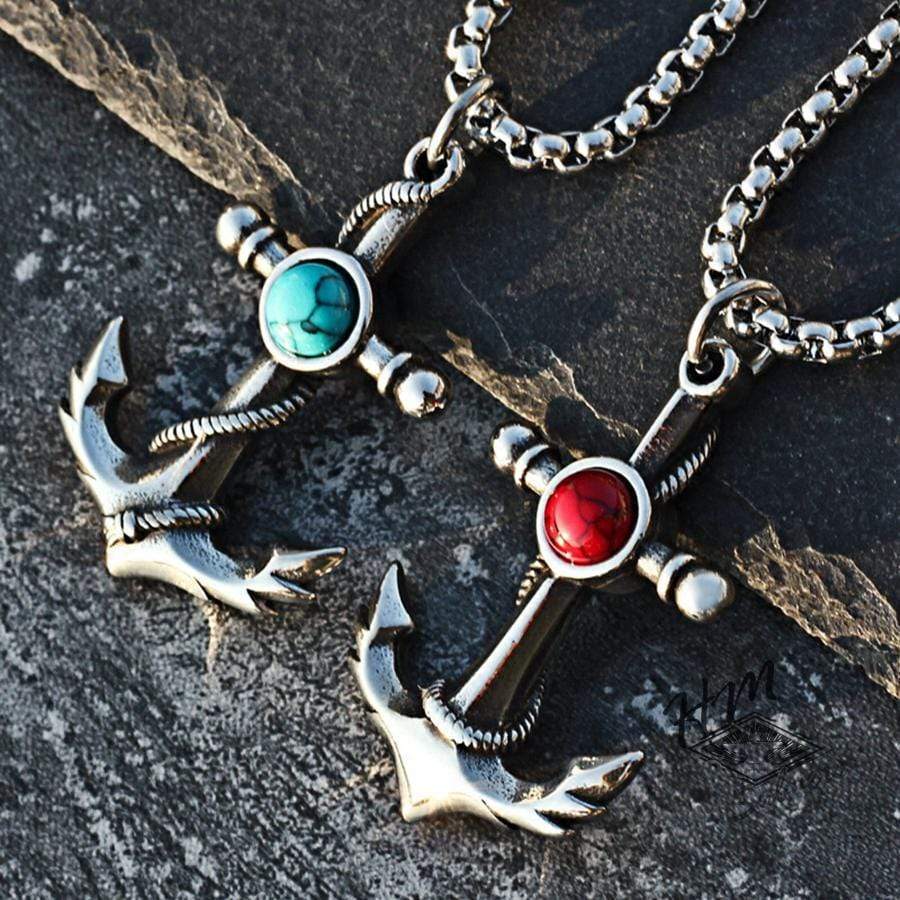 CLASSIC GEMSTONE ANCHOR STAINLESS STEEL PENDANT