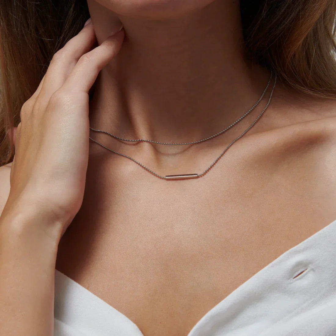 Like a beam of light crossing through the cosmos, this necklace brings a touch of celestial elegance to your look. Minimal yet profound, the Nova Bar Necklace is a reminder that sometimes, the boldest statements are the quietest whispers.