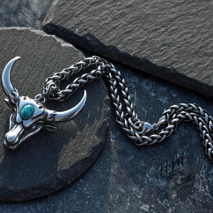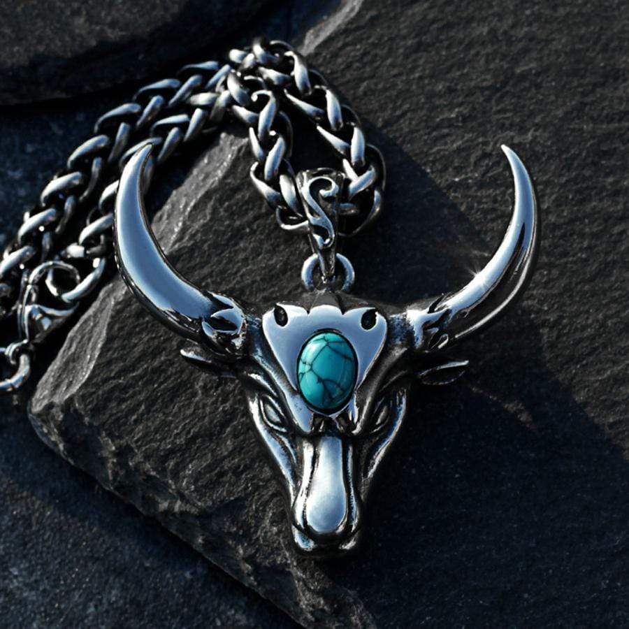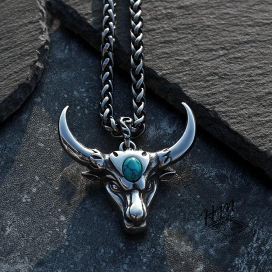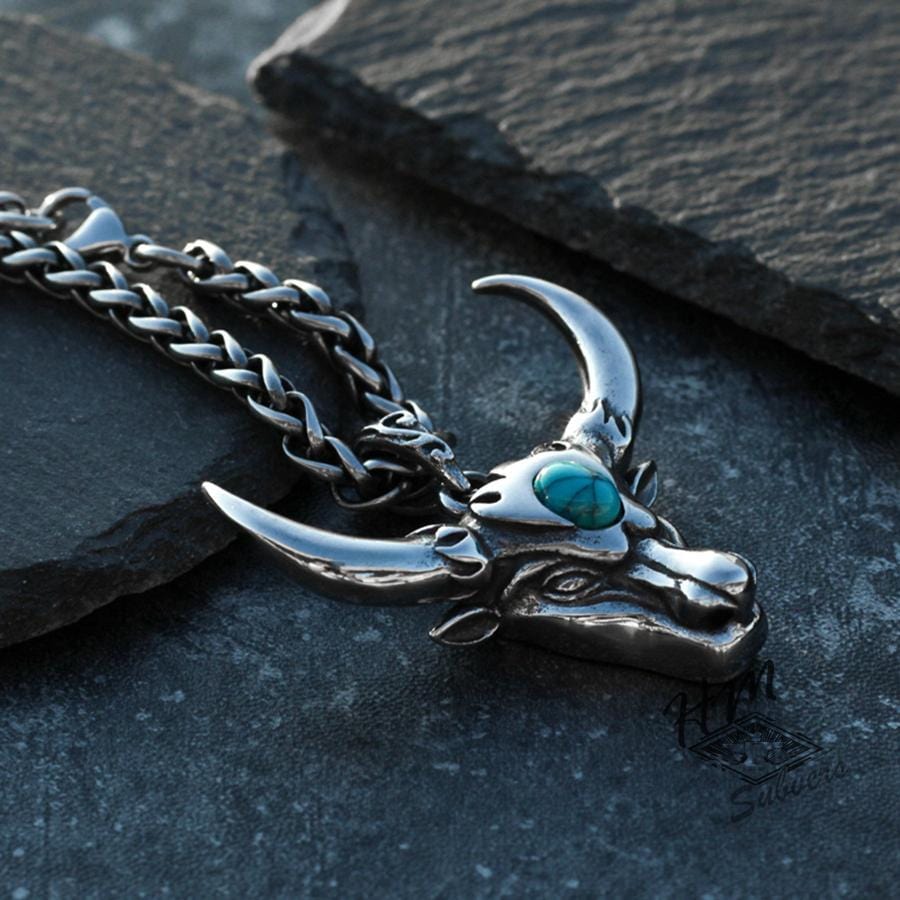 BULL'S HEAD STONE STAINLESS STEEL PENDANT