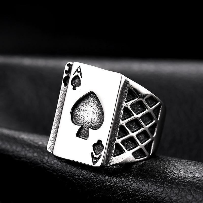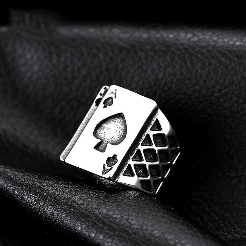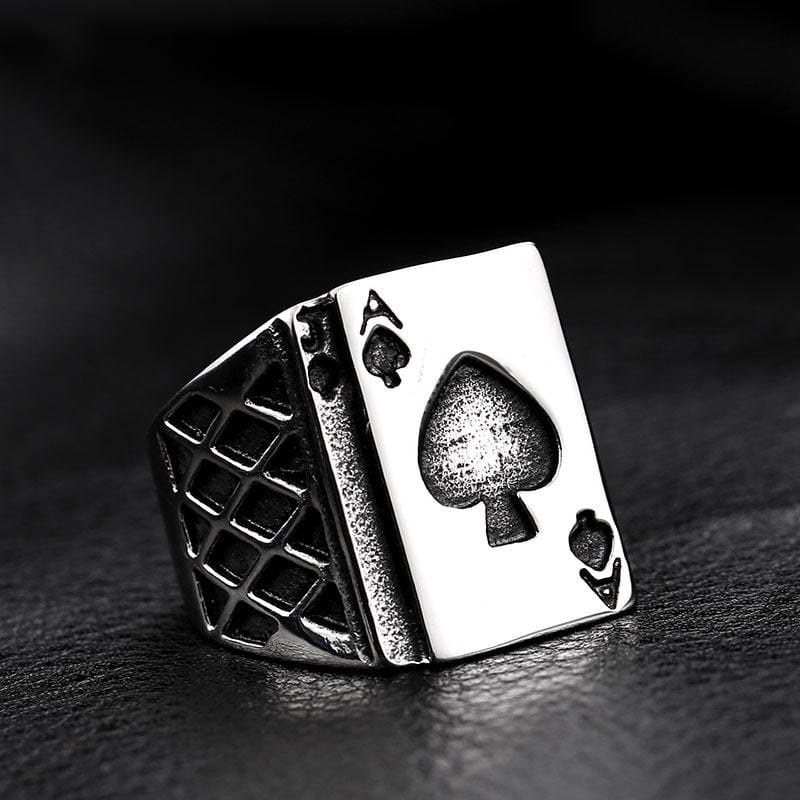 This ring is made of stainless steel with the theme pattern of a King of Spades playing card. The king card is usually the highest-ranking as well as the oldest and most universal court card. The piece is an eye-catcher and so especially unique for your jewelry collection. Make sure you order yours now before this bestseller is gone!