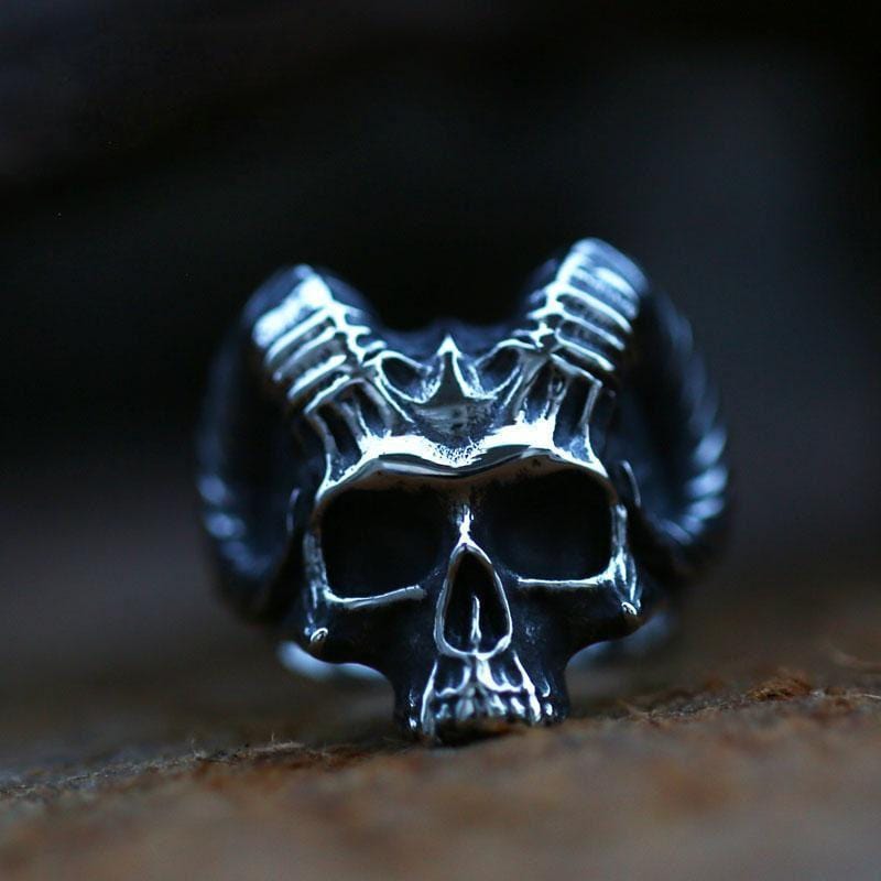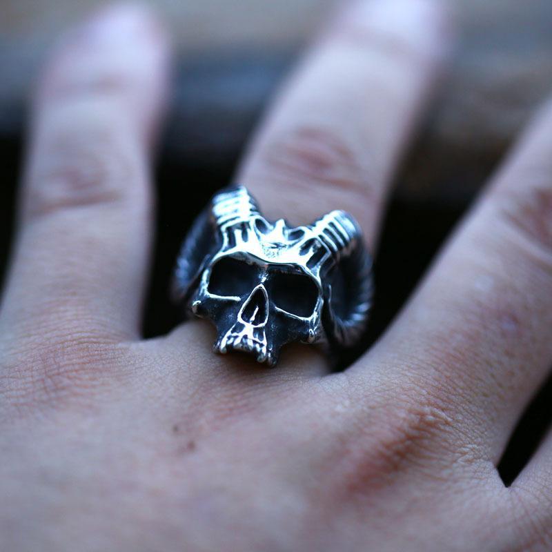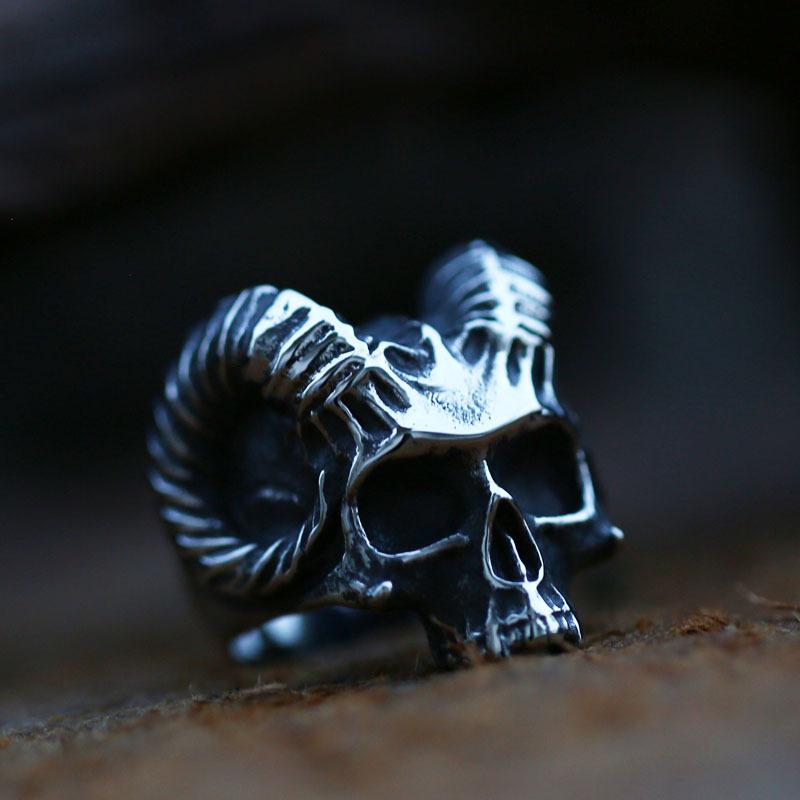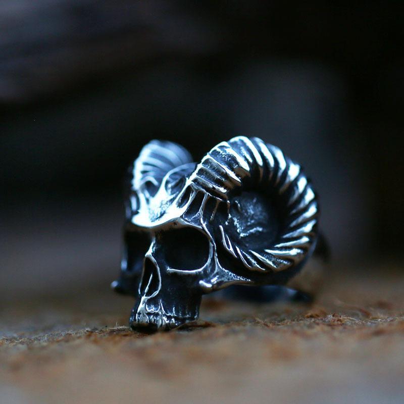 Produced from high-quality stainless steel, this sheep horn skull ring is thick and heavy yet exceptionally detailed. Its carefully crafted design is built to last and handle even the roughest times. This stainless steel ring makes a real statement when worn and is sure to grab desirable attention. Truly skull rings for men, truly men's stainless steel rings.