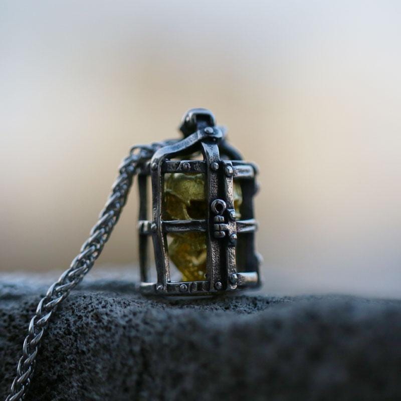 PUNK SKULL LANTERN STAINLESS STEEL PENDNAT