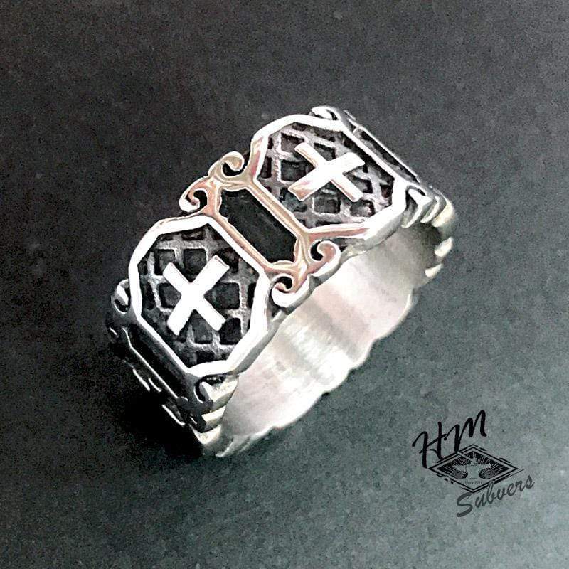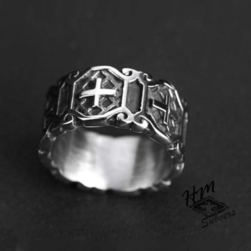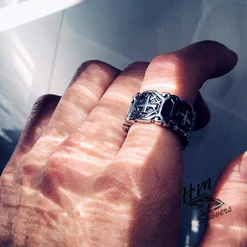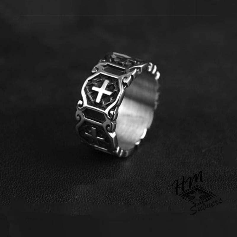 RETRO CROSS MEN'S STAINLESS STEEL RING