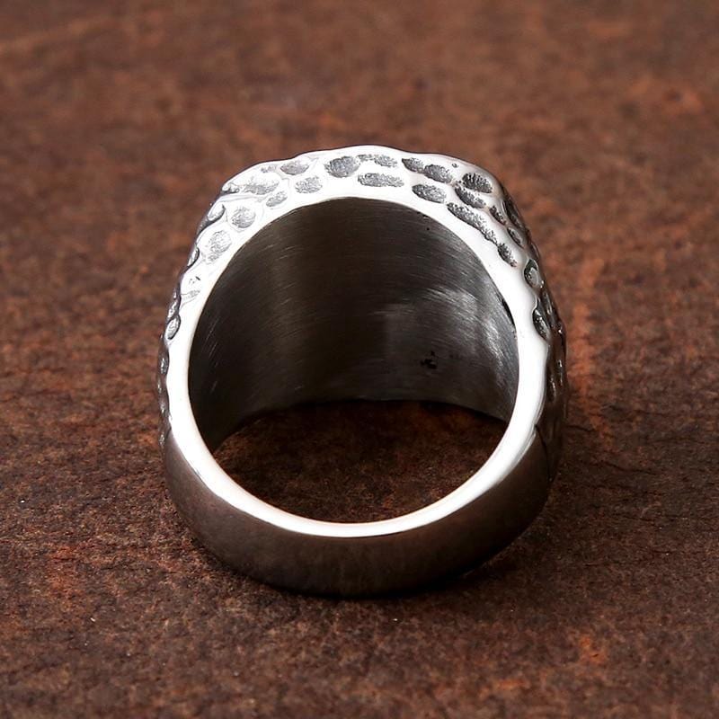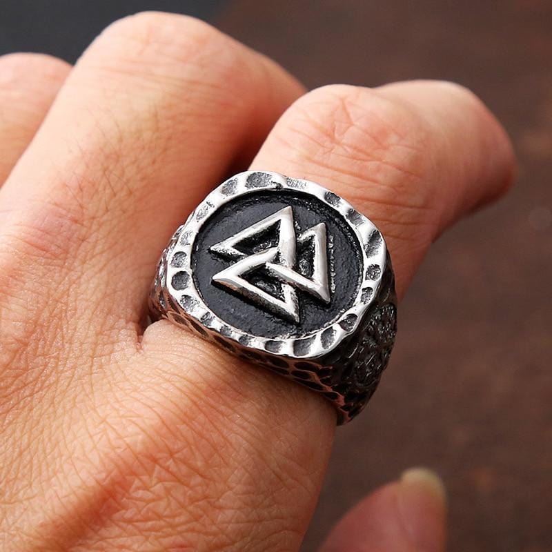 Valknut consists of three interlocking triangles pointing upward, and the Valknut symbol appears next to Odin. This meticulous piece of 316L surgical stainless steel, designed by our senior jewelers, is the highest grade of stainless steel in the jewelry industry.It will never tarnish... Rust... Corrode... Discolor... or leave stains on your fingers. Plus, it requires no maintenance to maintain its original "fresh out of the box" mechanical feel. Buy one for each of you.A real men's ring.