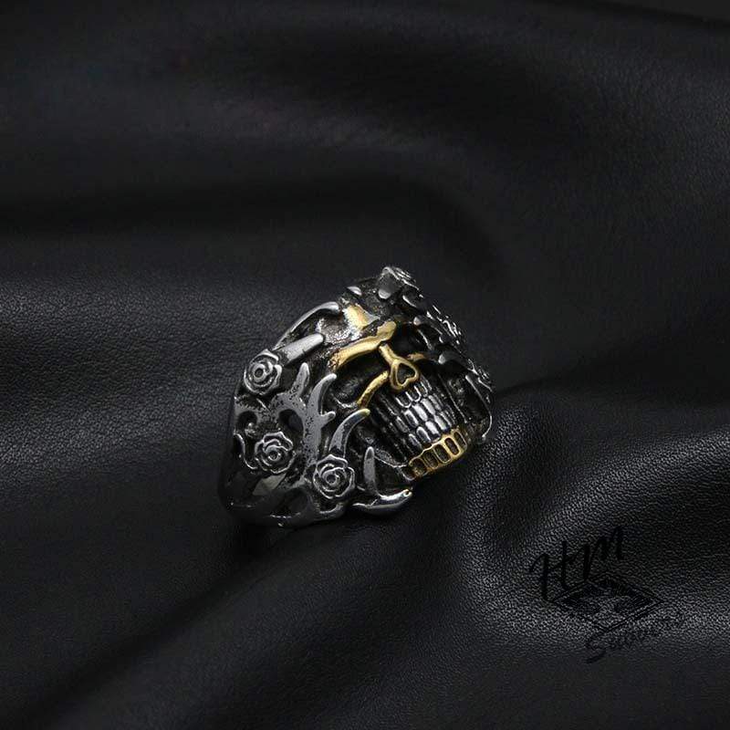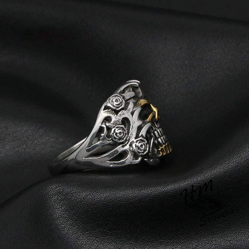 ROSETTE SKULL MEN'S STAINLESS STEEL RING