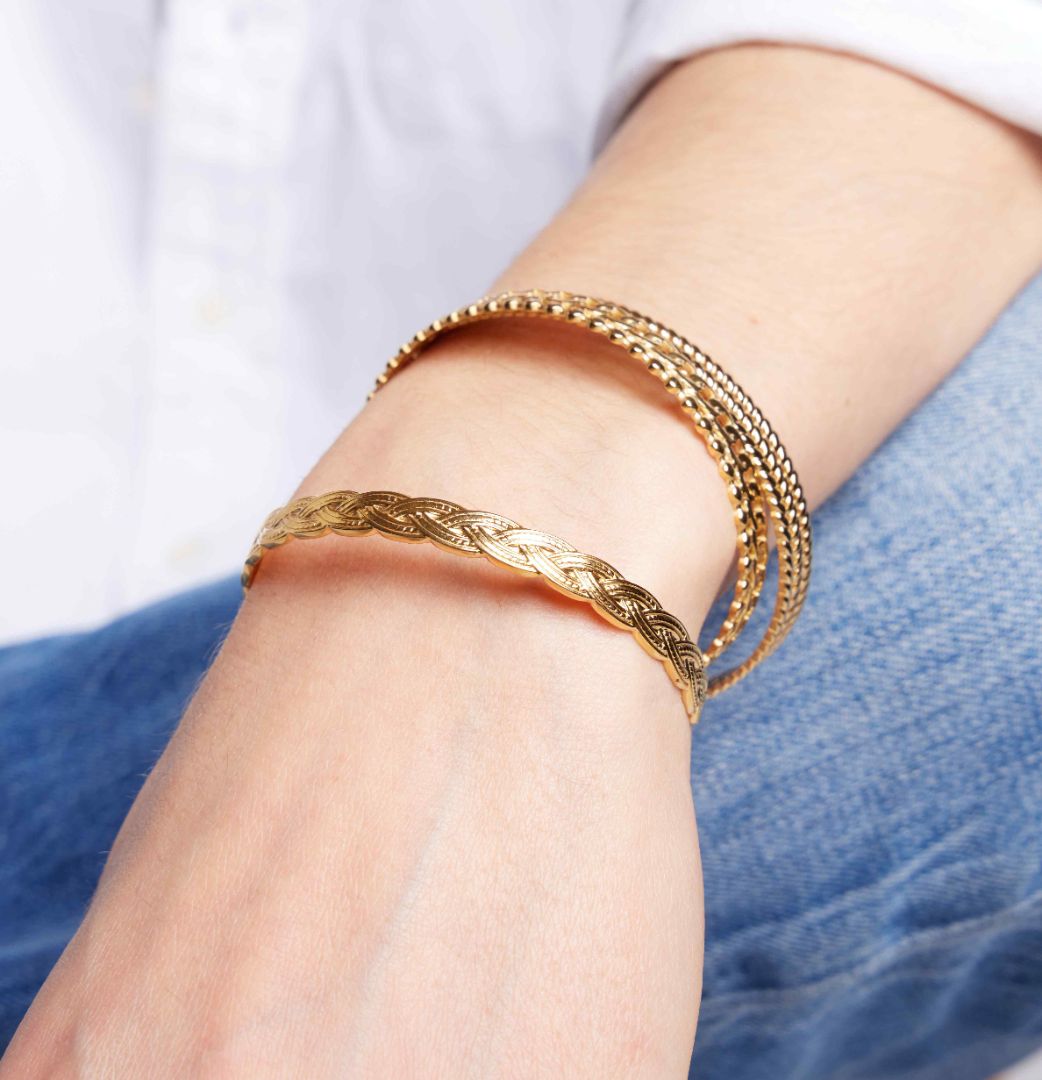 Elevate your wrist with the Serenity Cuff—a vintage-inspired bangle that exudes timeless charm. Its detailed design and classic silhouette make it a versatile accessory, perfect for adding a touch of retro elegance to your ensemble. Embrace the vintage allure of the Serenity Cuff and let it become a signature piece that complements your sophisticated style, whether worn alone or paired with other favourites.