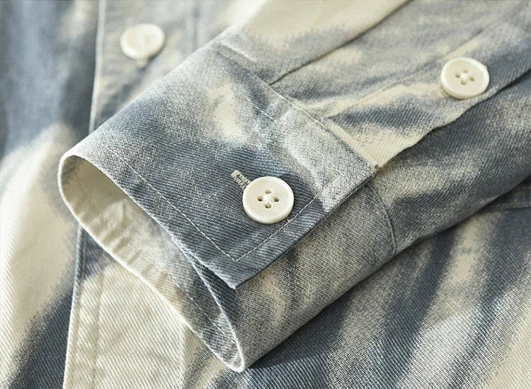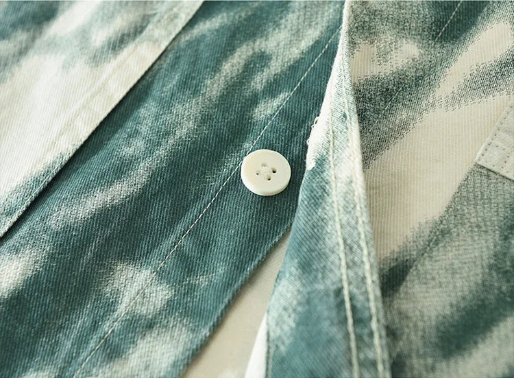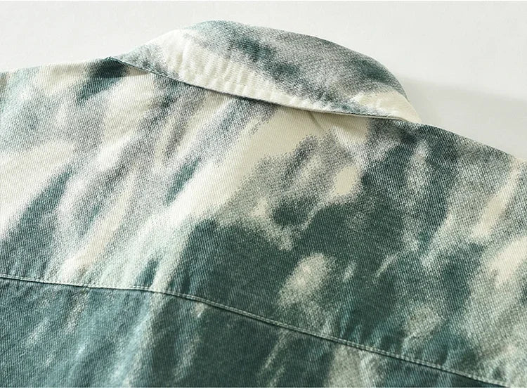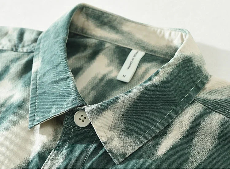 Featuring a unique tie-dye effect in earthy green and cream tones, this shirt offers a relaxed vibe that's perfect for laid-back days. Made from comfortable, breathable fabric, it includes a button-down front, classic collar, and two functional chest pockets for added utility. The shirt’s versatile design makes it easy to layer over a basic tee or wear solo for a more polished look. Ideal for pairing with jeans or chinos, this shirt effortlessly blends comfort with contemporary style.