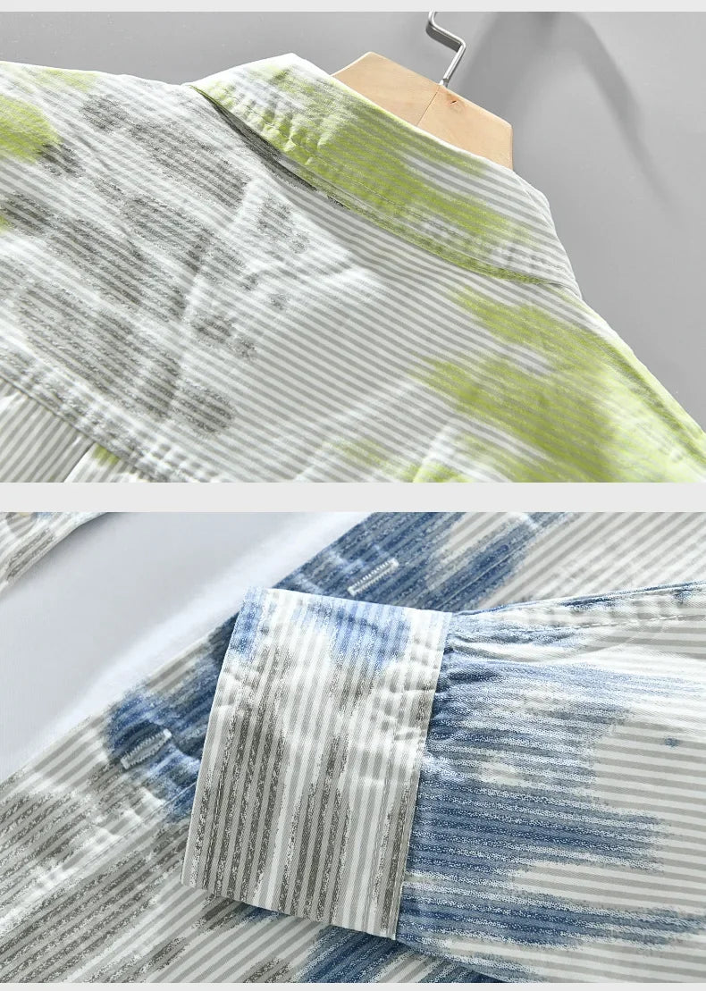 Stand out with our new Ernesto No.145. Made from 100% Pure Cotton, this shirt features a unique, dreamy Pattern available in 3 vibrant colors. A fresh Llme tone, which exudes lightness and cheerfulness. Ocean blue: a gentle coolness. And tangerine, communicating strength and warmth.