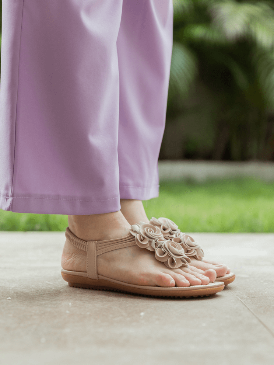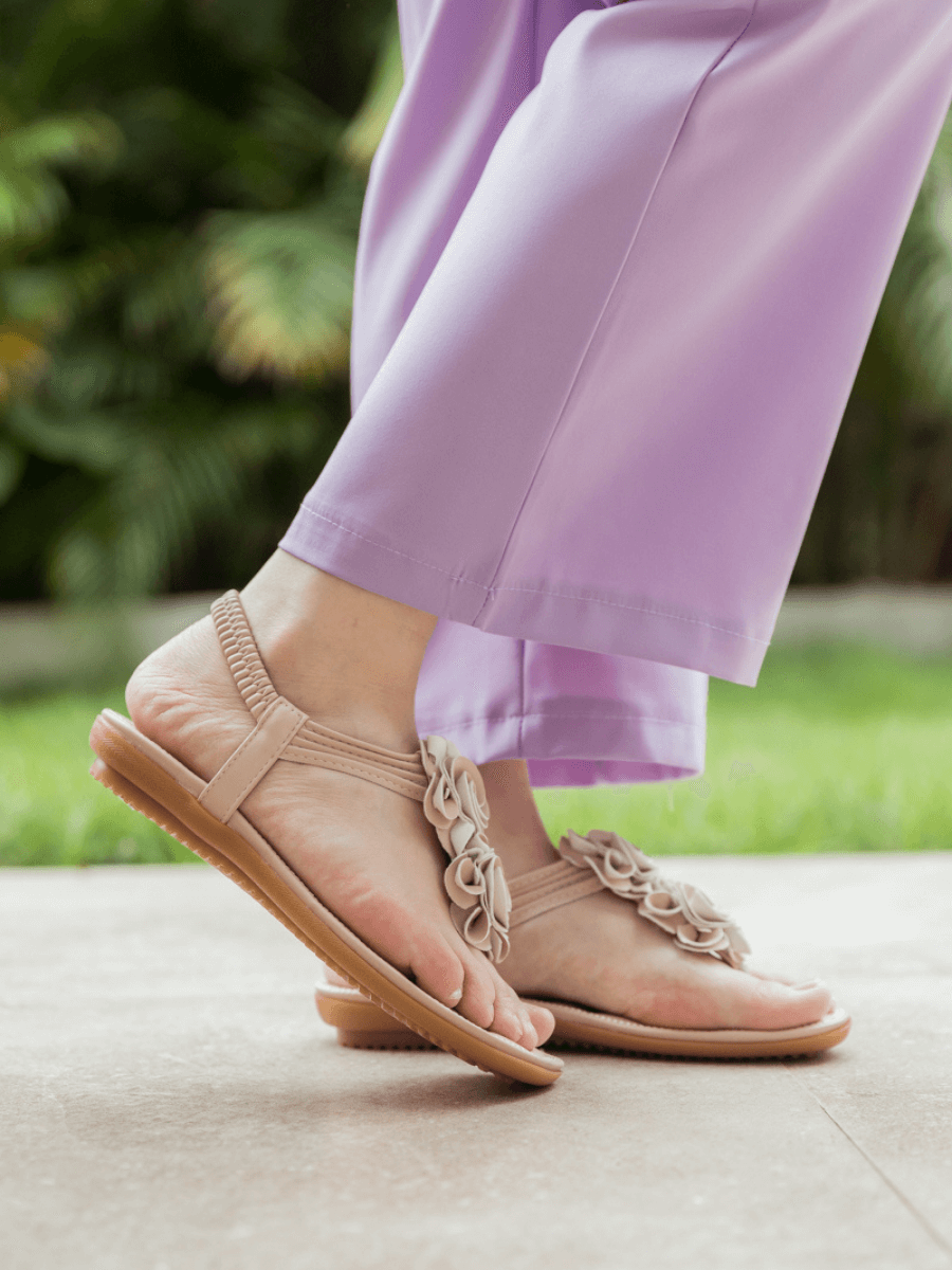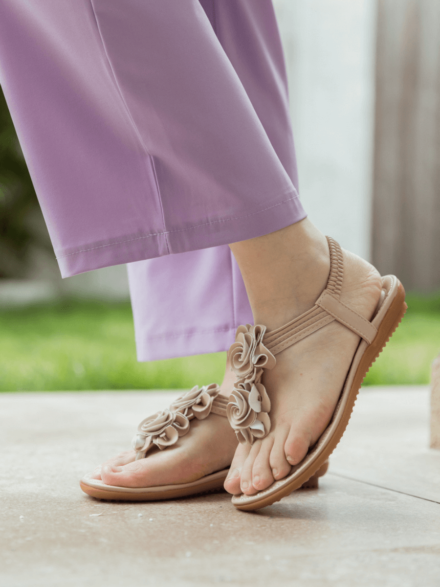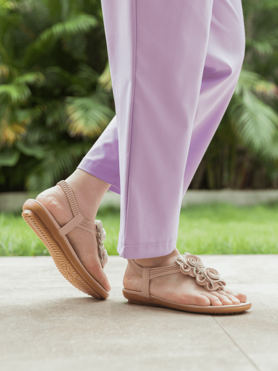 Add eye-catching detail to ensembles with the sweet embellished straps of these comfortable sandals. An anti-skid sole provides ground-gripping traction.