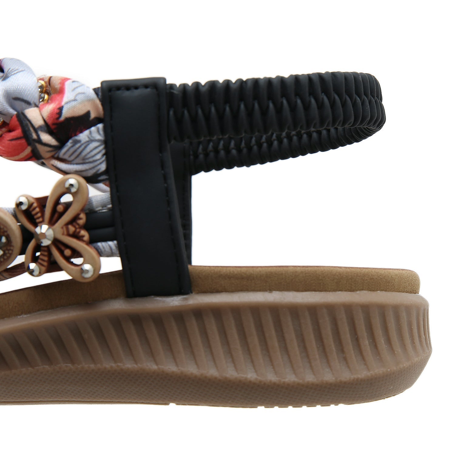 SIKETU | FLORAL BEAD BRAIDED ASYMMETRICAL SANDAL - BLACK