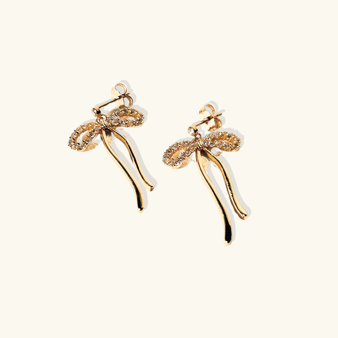 The Starlight Bow Earrings blend elegance with whimsical charm. Featuring a delicate bow design adorned with sparkling stones, these earrings capture the magic of starlit evenings. Perfect for adding a touch of celestial grace to any outfit. Embrace the enchanting allure of the night sky with the Starlight Bow Earrings.