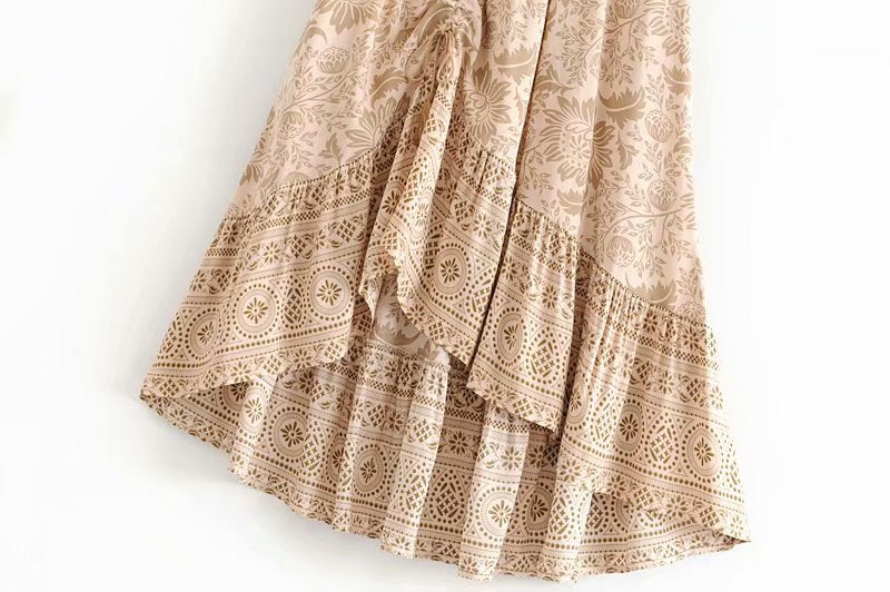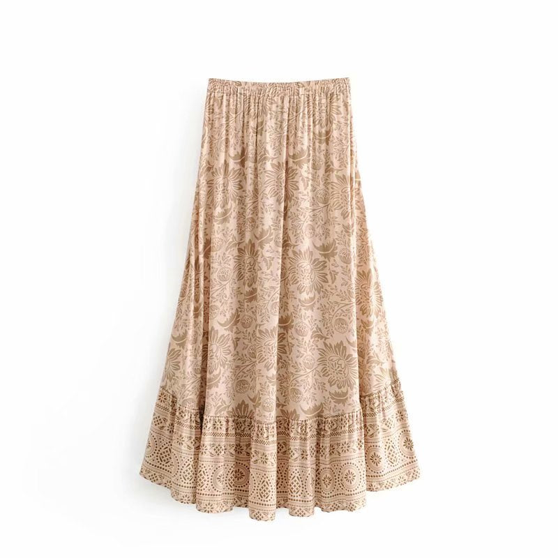 Stella is a boho-chic skirt designed for a relaxed, free-spirited woman. The skirt has a comfortable waistline and natural factors fit, with a stylish bohemian print that is perfect for summer vacations by the beach or Casual Fridays at the office. Made from soft and breathable knit fabric, Stella is also machine-washable and wrinkle-resistant for easy care.