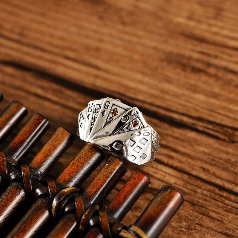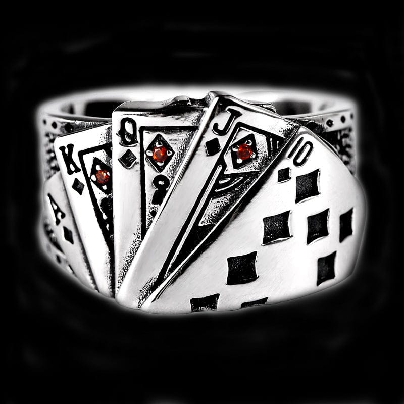 STRAIGHT FLUSH POKER CARDS SILVER RING