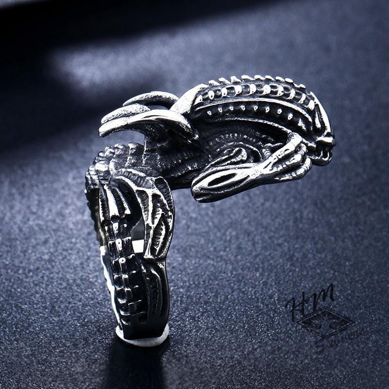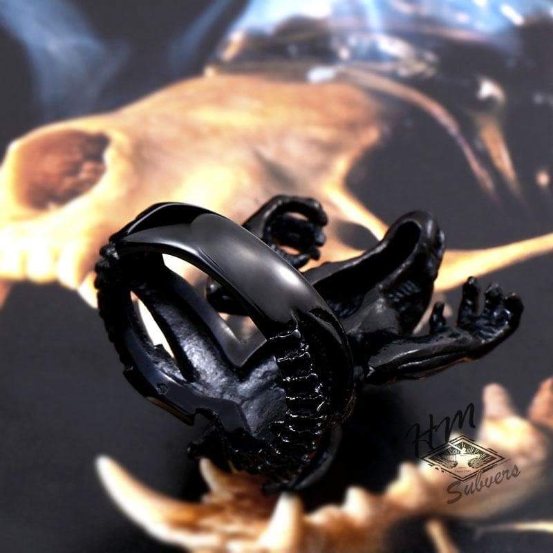 Made of high quality stainless steel, this horror shaped ring is thick and exceptionally detailed. It has been carefully crafted to last even in the toughest of times. This stainless steel ring makes an authentic sound when worn and is sure to get noticed. A real men's ring, a real men's stainless steel ring.