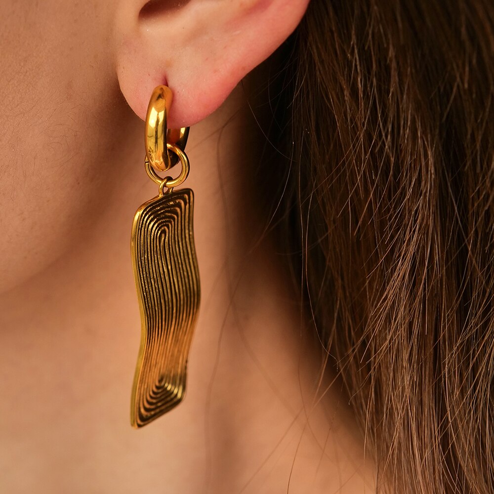 Vintage-inspired allure in a captivating duo. Elegant gold earrings and necklace adorned with intricate details and lustrous gemstones, embodying timeless sophistication. Elevate your style with a touch of nostalgic charm.