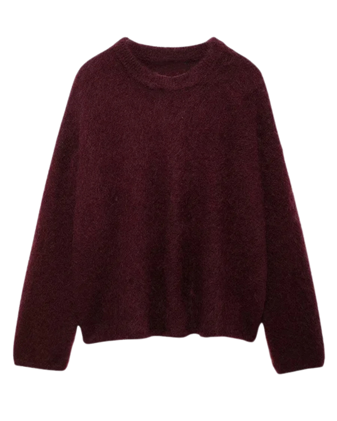 Get the “Tess” sweater and add a touch of luxury and style to your look in burgundy!