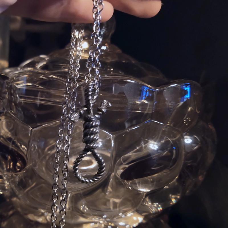 This twisted hemp rope pendant is made of high quality stainless steel, is thick, and exceptionally detailed. It has been carefully crafted to last even in the toughest of times. This stainless steel pendant makes an authentic sound when worn and is sure to attract attention. A real men's pendant, a real men's stainless steel pendant.