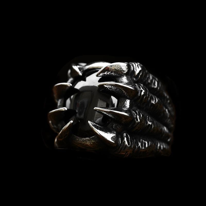 VINTAGE DRAGON CLAW AND GEMSTONE STAINLESS STEEL RING
