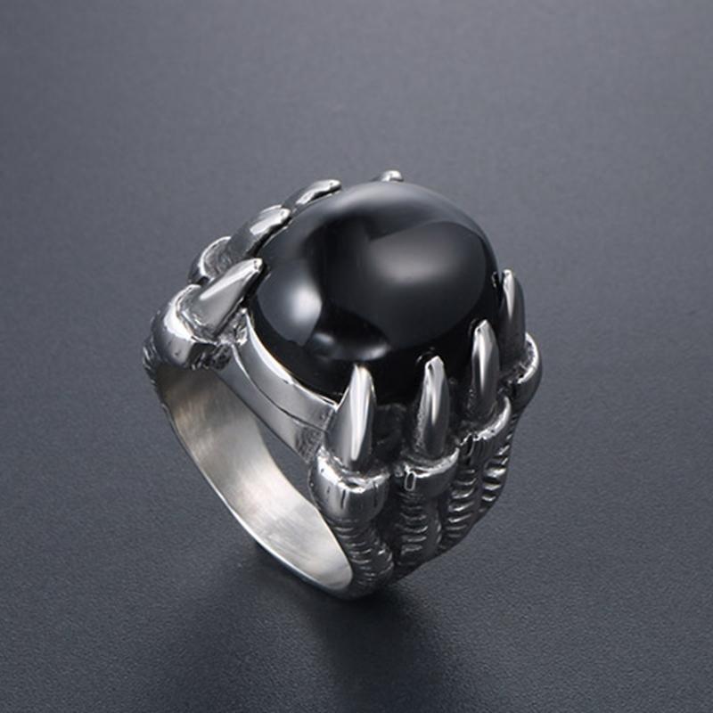 Produced from high-quality stainless steel, this dragon claw gemstone ring is thick and heavy yet exceptionally detailed. Its carefully crafted design is built to last and handle even the roughest times. This stainless steel ring makes a real statement when worn and is sure to grab desirable attention. Truly skull rings for men, truly men's stainless steel rings.