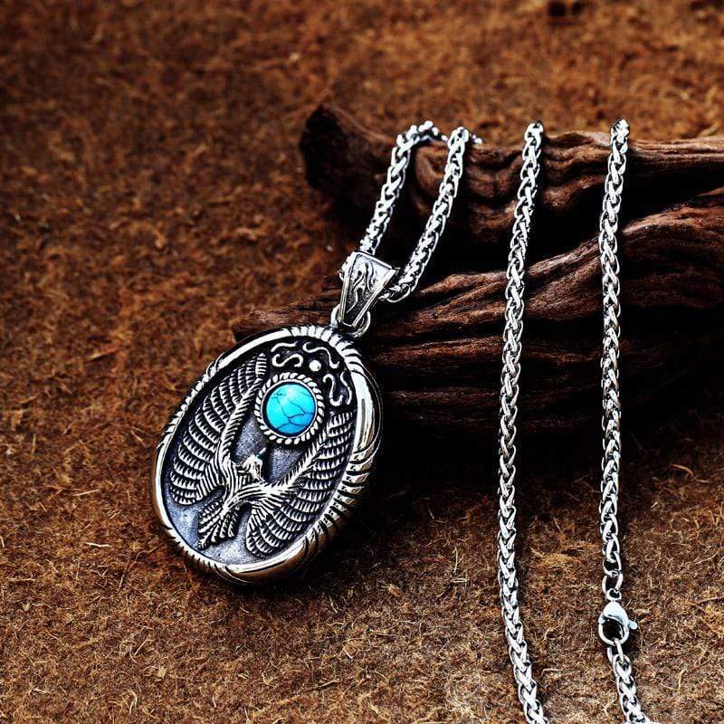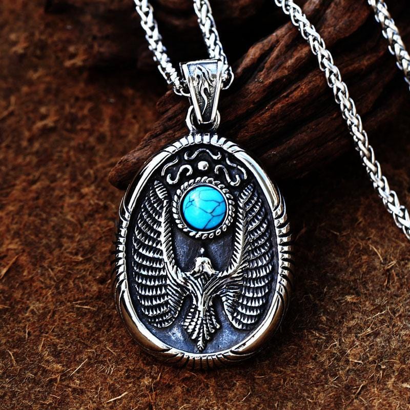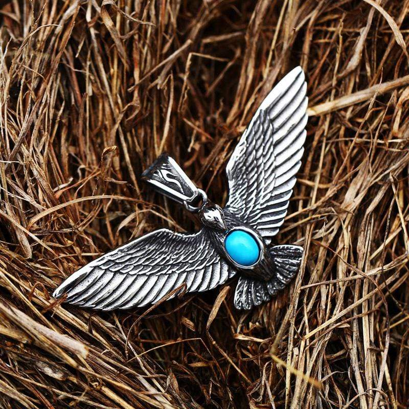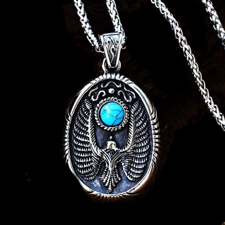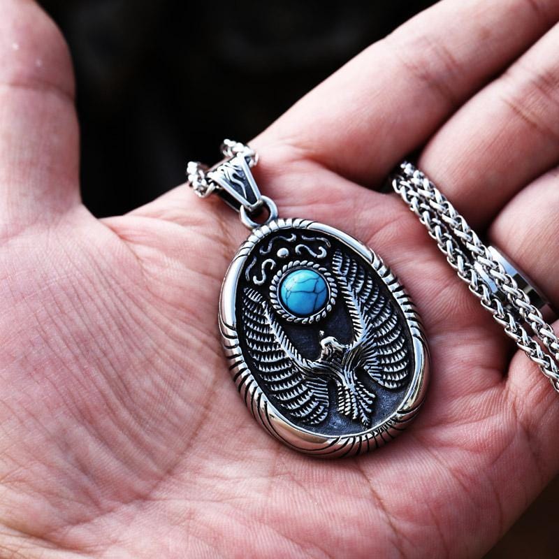 This holy bird gemstone pendant is made of high quality stainless steel, thick, and exceptionally detailed. It has been carefully crafted to last even in the toughest of times. This stainless steel pendant makes an authentic sound when worn and is sure to attract attention. A real men's pendant, a real men's stainless steel pendant.