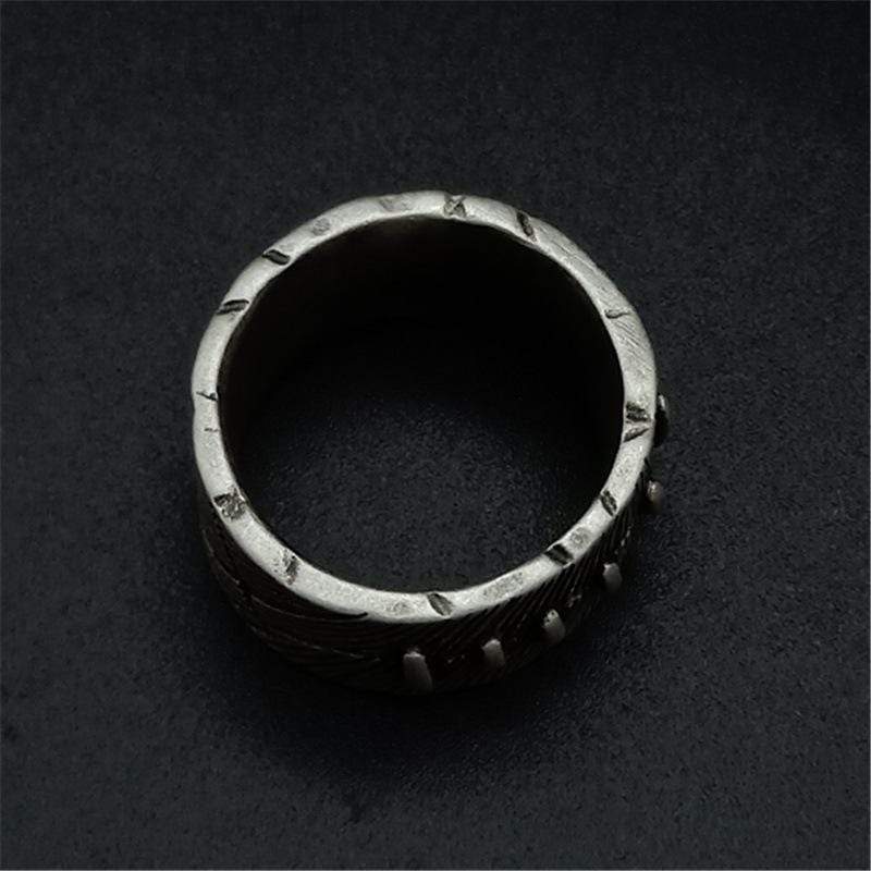This patchwork ring is made of high quality stainless steel, is thick, and exceptionally detailed. It has been carefully crafted to last even in the toughest of times. This stainless steel ring makes an authentic sound when worn and is sure to attract attention. A real men's ring, a real men's stainless steel ring.