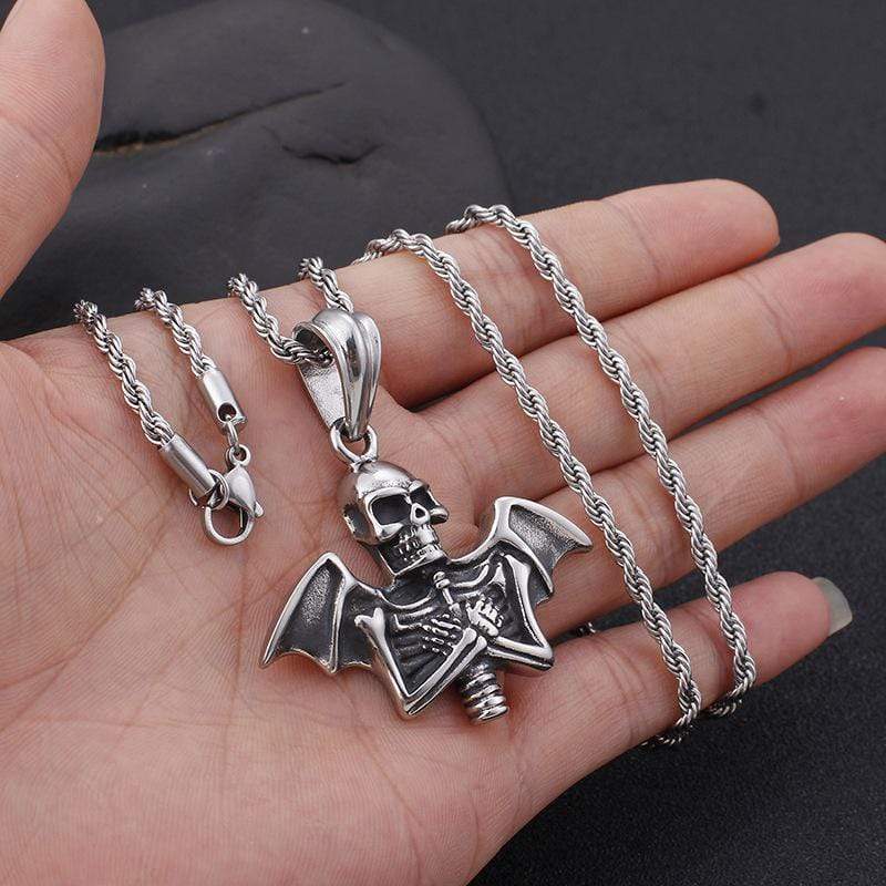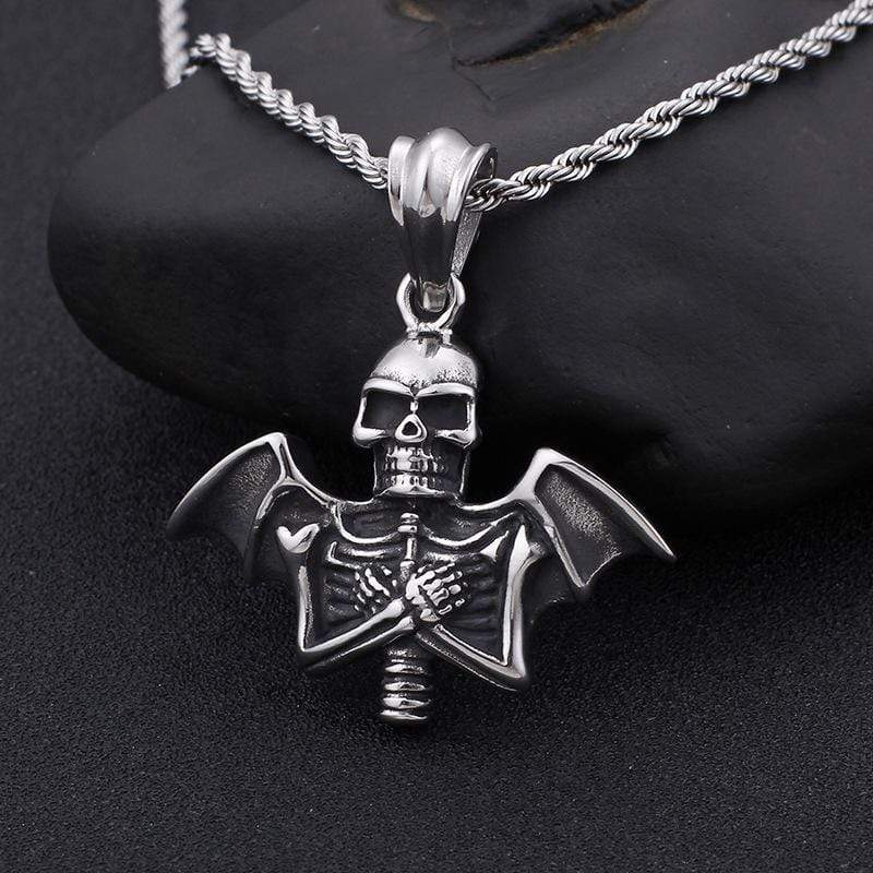 VINTAGE PUNK BAT SKULL STAINLESS STEEL PENDANT