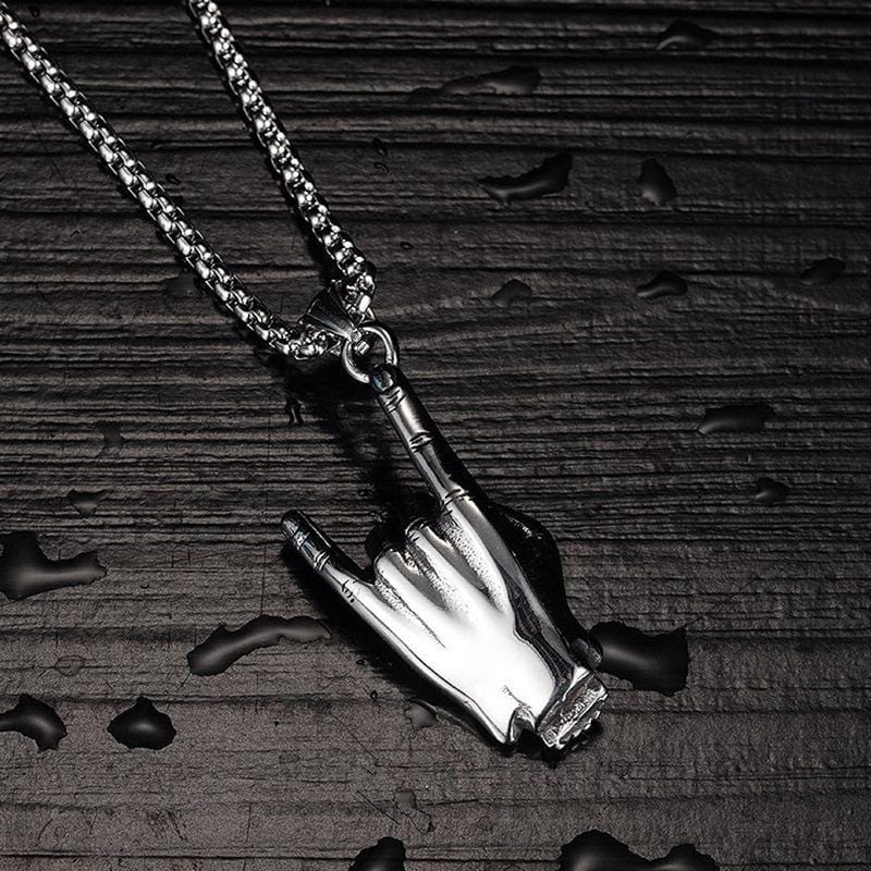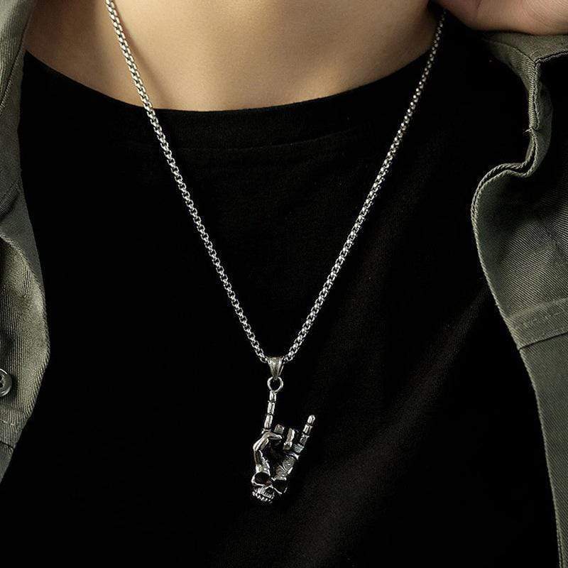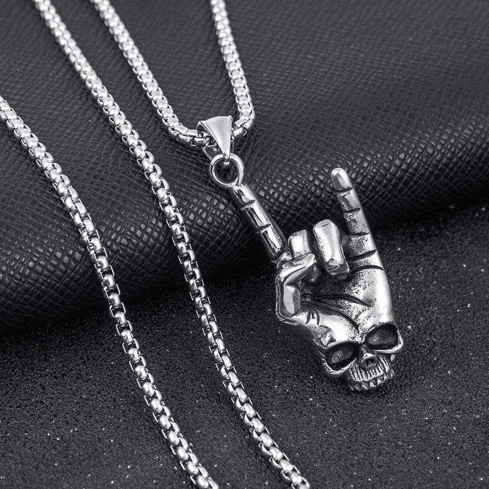 VINTAGE SKULL FINGER STAINLESS STEEL PENDANT