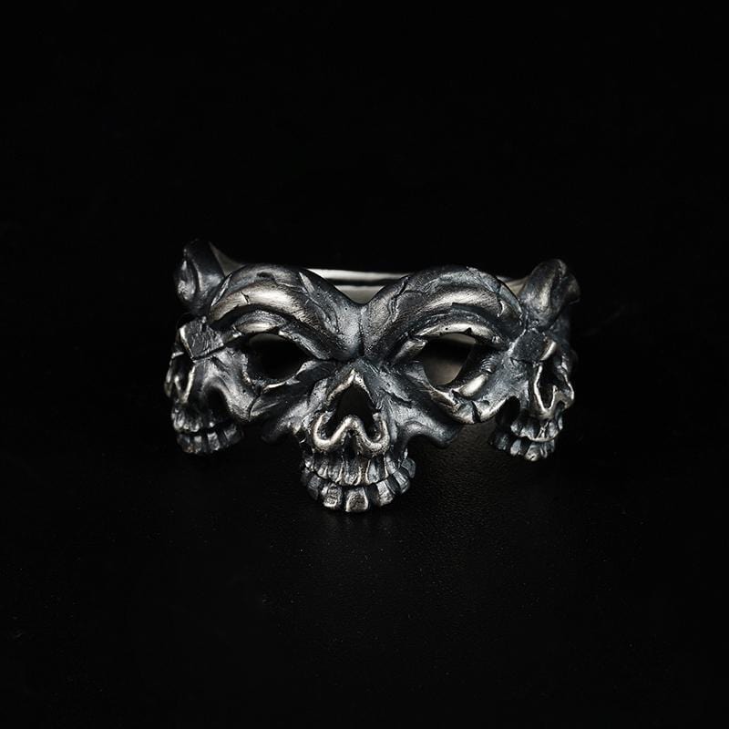 This delicate silver ring is handcrafted for you with great care.The style of the three skulls is very peculiar and the style is really attractive.The shape of the ring texture is handcrafted, each texture is repeatedly pounded to portray the rhythm of a thousand years of refinement.Wearing silver jewelry regularly can have an antiseptic effect, promote wound healing and prevent secondary infections.