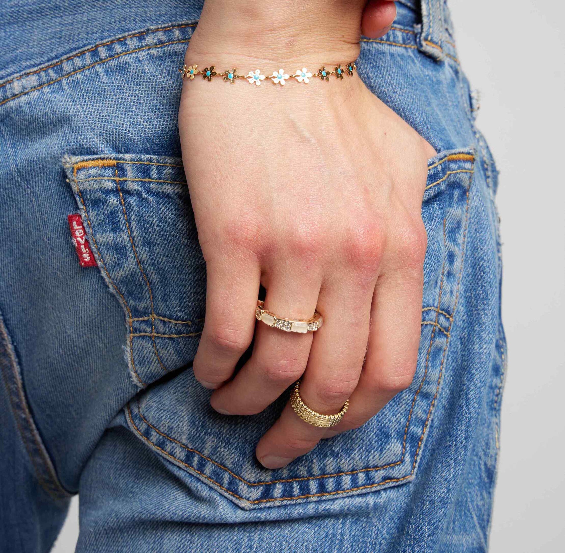 - 18k gold-plated stainless steel with zircon and white gemstone