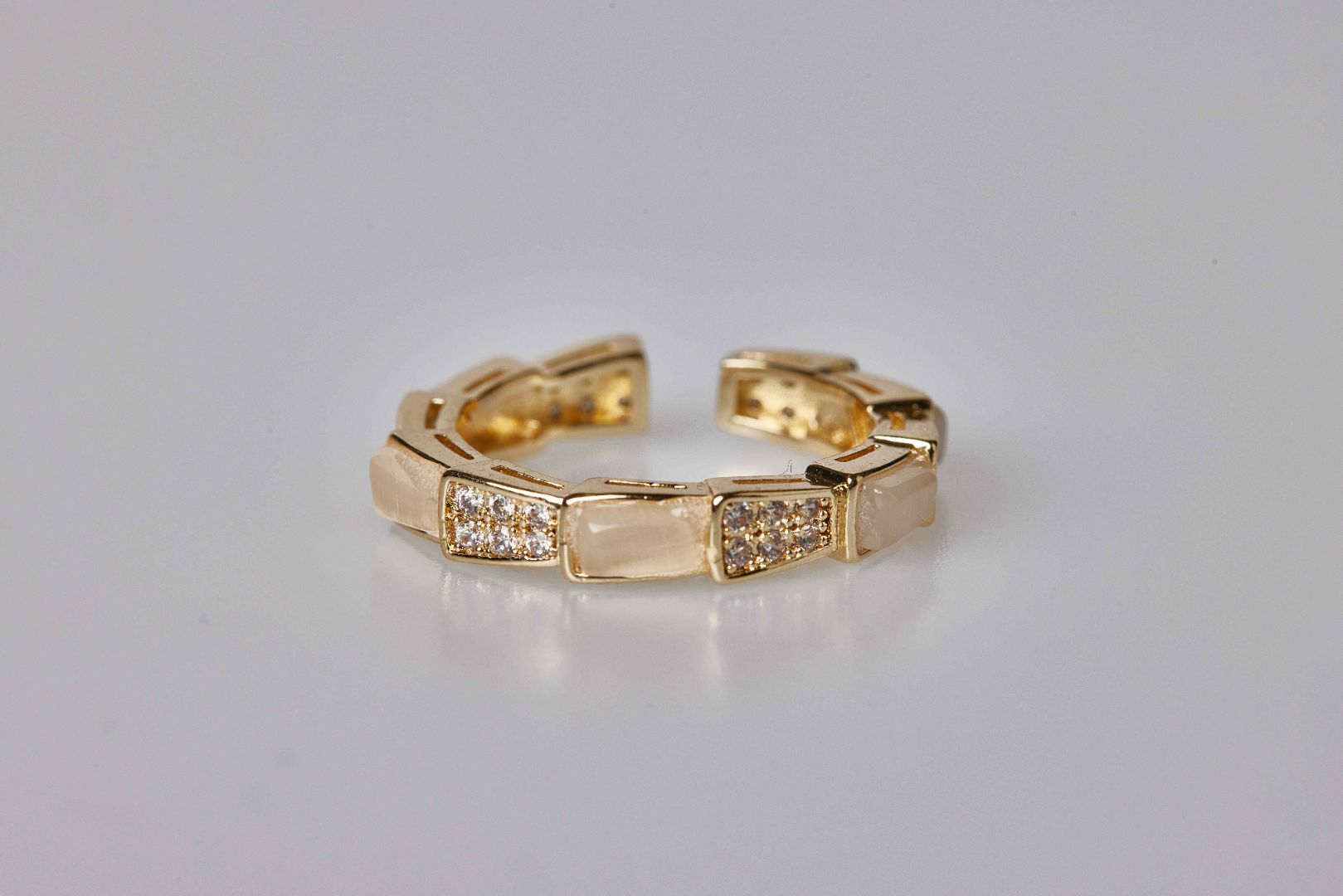 Discover pure opulence with our White Treasure Ring—a stunning piece adorned with a pristine white gemstone and shimmering zircon accents. This ring combines elegance and luxury, creating a symbol of refined beauty that effortlessly elevates your ensemble. Whether worn individually for a striking statement or paired with other rings, the White Treasure Ring allows you to express your style with versatile and refined elegance. Elevate your look with this radiant symbol of pure opulence—a perfect accessory that seamlessly complements your unique sense of style.