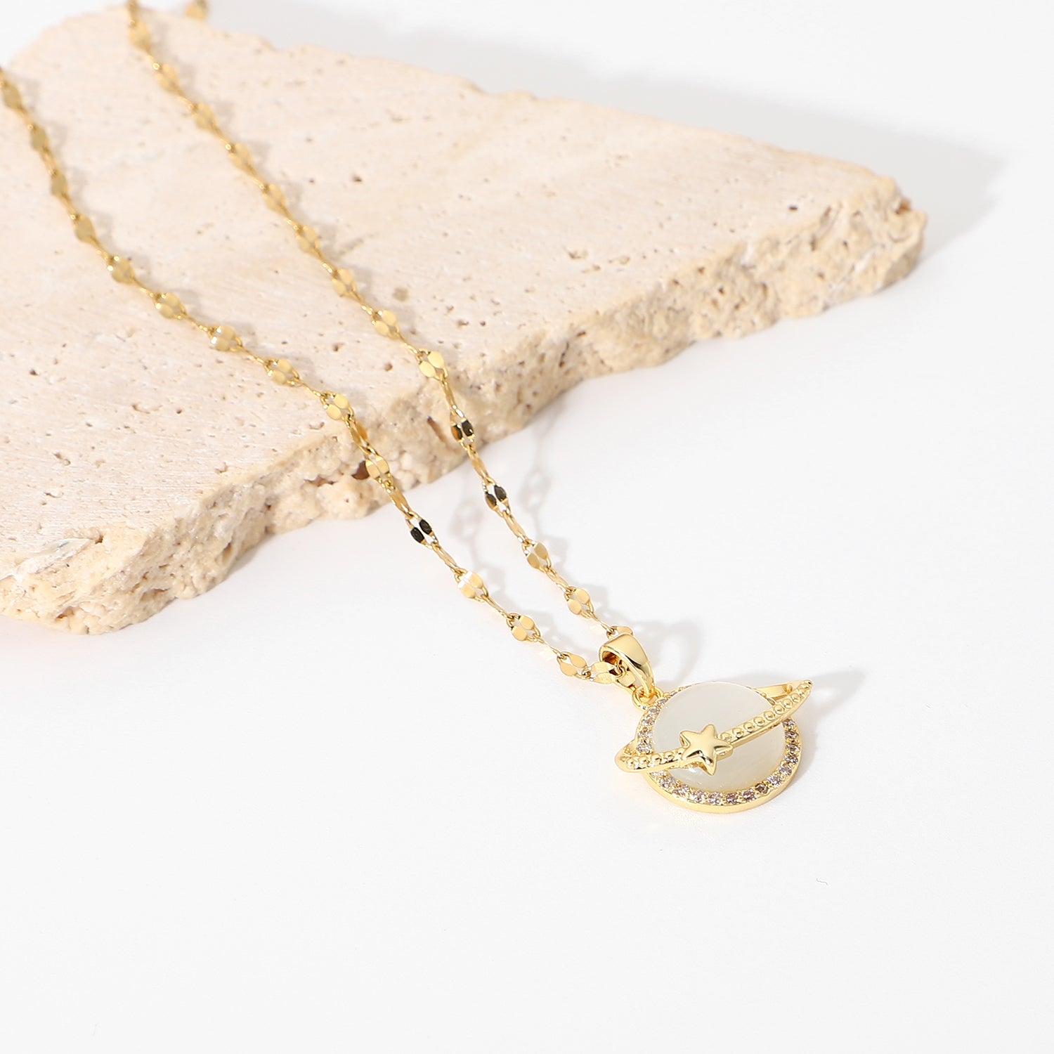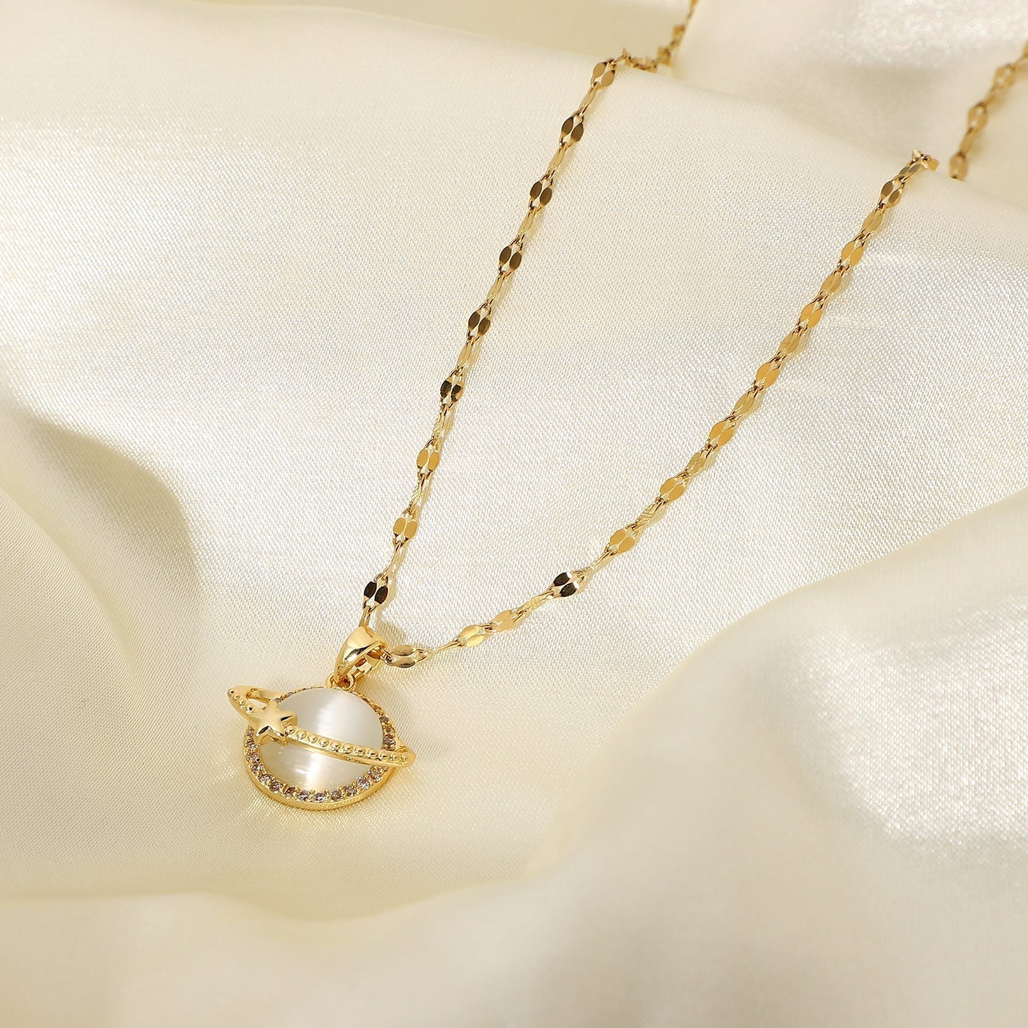 Amazing Zircon planet Earth Opal stone pendant necklace for woman.18K gold chain choker. Adds decency and elegance to your outfit.