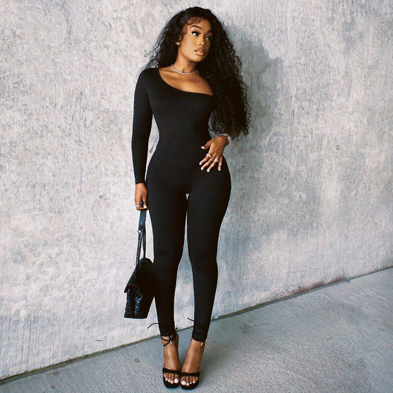 Let your fashionista side take over with this chic and stylish Zoey jumpsuit from WOMEDOLLY. Crafted with polyester and spandex, this long sleeve one shoulder jumpsuit gives you a flattering look with a skinny fit. The ankle-length pant and knitted fabric ensure maximum comfort and style. Whether you're going for a casual streetwear look or a dressy night out, this jumpsuit is the perfect choice. So make a statement with Zoey and look your best wherever you go!